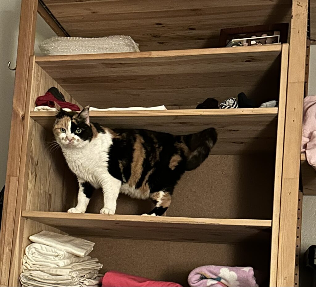 I’ll get right to the point: this is a really fine cat. She’s affectionate and playful, she doesn’t overeat, and she’s a looker. Check out all that color! (I don’t know if Callie has always been her name or if it was given to her at the sanctuary, but its significance for a calico is obvious. And after only a week with me I believe she responds to it.)