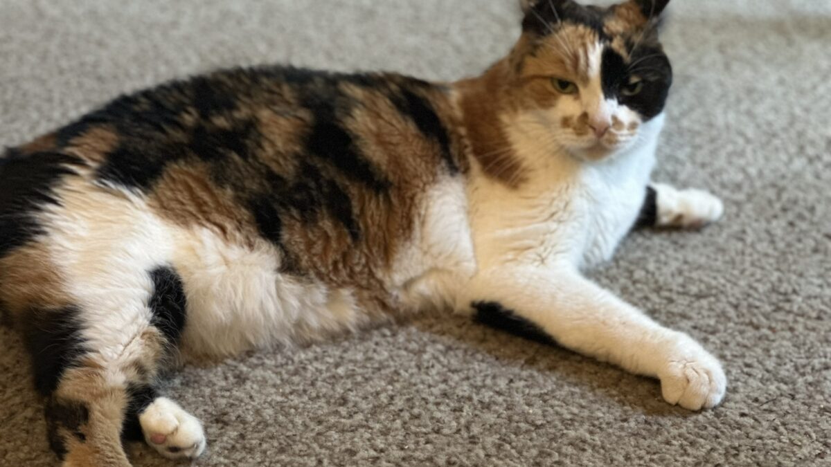 The folks at Fat Kitty City tell me that Callie and several siblings lived with a woman who unfortunately passed away. The cats were left alone, semi-abandoned, and at risk of being put out on the streets. But fortunately for them—and for their eventual forever-humans—they ended up in Fat Kitty City.