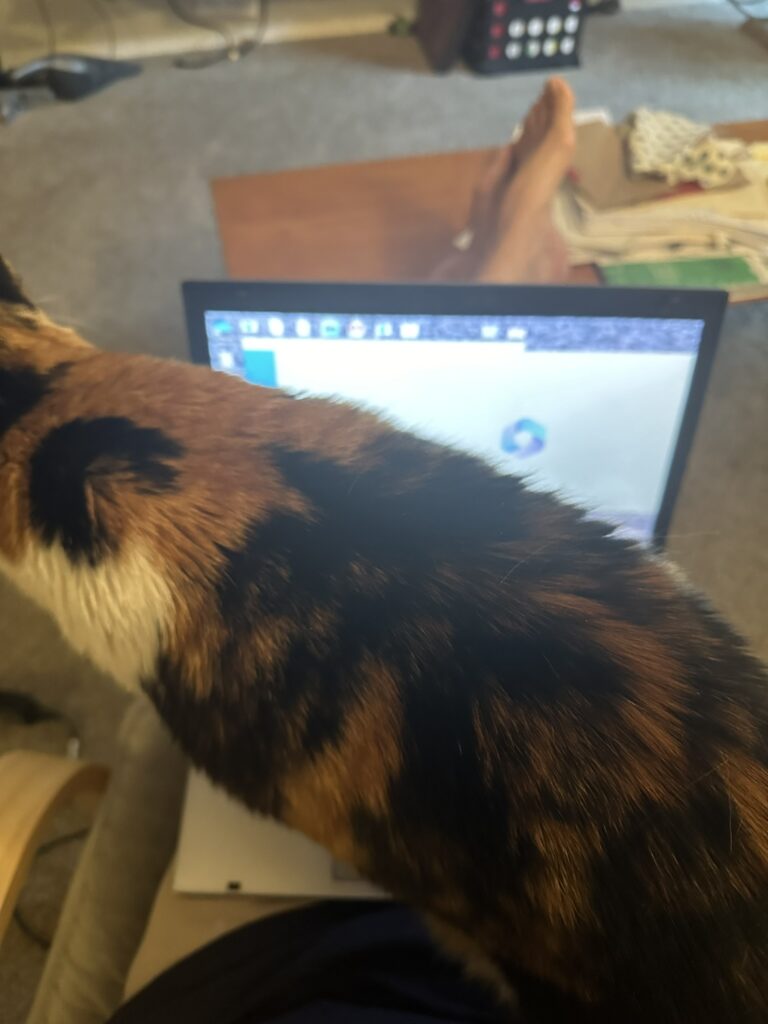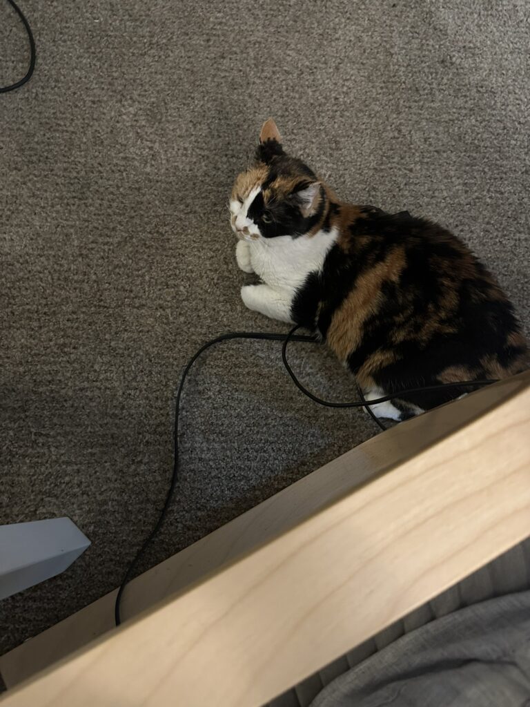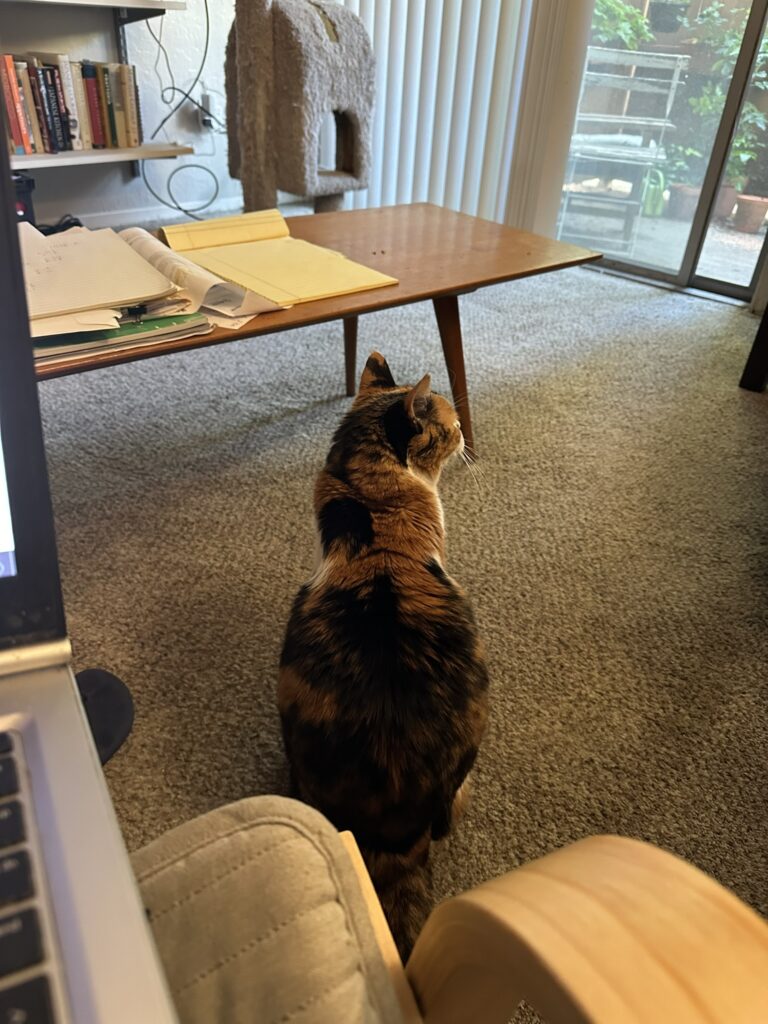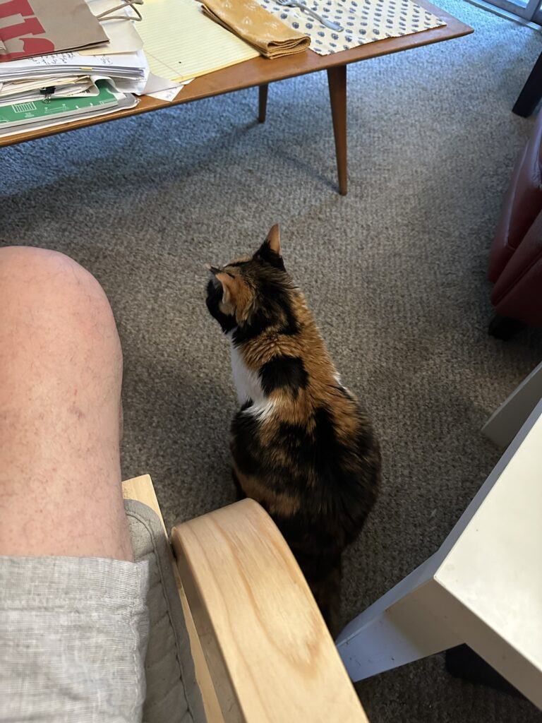 It’s a very doglike thing she does, sitting at my feet while I’m in my chair.